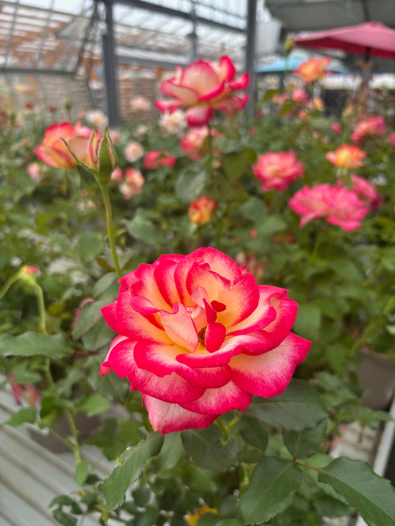 Mais aussi une belle collection d'agrumes ( citronniers, orangers, kumquats,...) ainsi qu'un large choix de rosiers ( paysagers, arbustifs, grimpants...)
